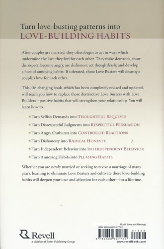 According to relationship expert and bestselling author Dr. Willard F. Harley, Jr., after couples get married, they often develop habits that slowly undermine the love they have for each other. If tolerated, these Love Busters–selfish demands, disrespectful judgments, angry outbursts, dishonesty, annoying habits, and independent behavior–will destroy a couple's love for each other. The solution, however, isn't merely to avoid these negative behaviors and attitudes. Rather, it's to cultivate Love Builders–positive habits that will strengthen the relationship.