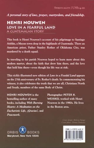 This is Henri Nouwen's personal account of a pilgrimage to Santiago Atitlan, a Mayan town in the highlands of Guatemala. It was there that an American priest, Father Stanley Rother, was murdered by a death squad in the parish where he served. In traveling to Santiago Nouwen hoped to learn more about this modern martyr about the faith that drew him there, and the love that held him in place, even when his life was threatened.