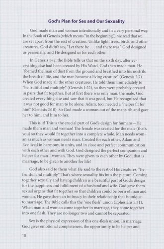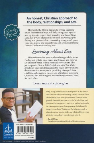 This book, the fifth in the newly revised Learning About Sex series for boys, will help young men ages 14 and up learn to respect their sexuality and honor God. Love, Sex & God addresses issues such as pornography, dating, and premarital sex, answering young men's questions in a simple and accurate way and always reminding them of God's never-ending love.