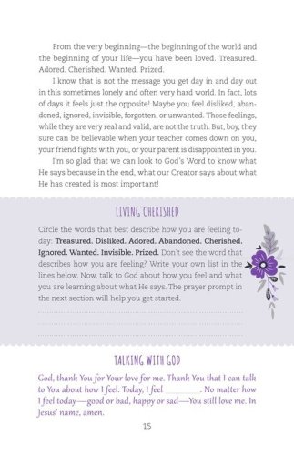 With a beautifully decorated cover, ribbon marker, and lovely page illustrations, this book of devotions will make the perfect gift for any girl in your life who deserves to know she is cherished, treasured, valuable, and worthy.
