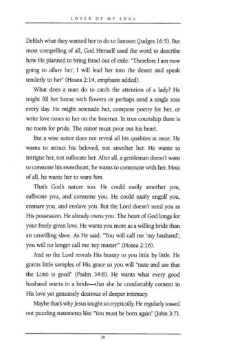 Every person longs to be loved, to believe someone cares for them more than life itself. By weaving the rich imagery of a wedding throughout the text, in Lover of My Soul the reader is reminded that Christ the Bridegroom loves them deeply and completely – that He gave His life as payment for their eternal joy. In the same way every bride appears as a radiant beauty on her wedding day and every groom is handsome and strong, Christ presents His all-satisfying love to anyone who will take His hand in a spiritual marriage of the heart.