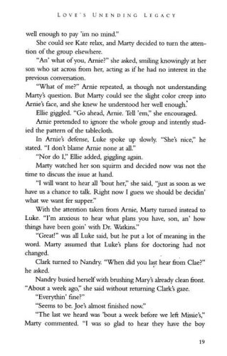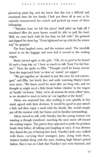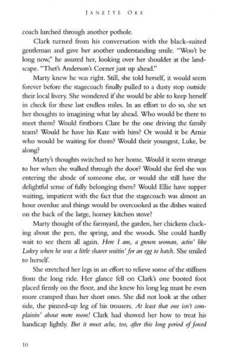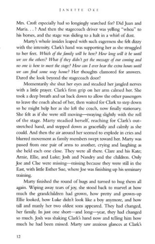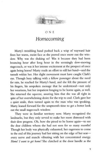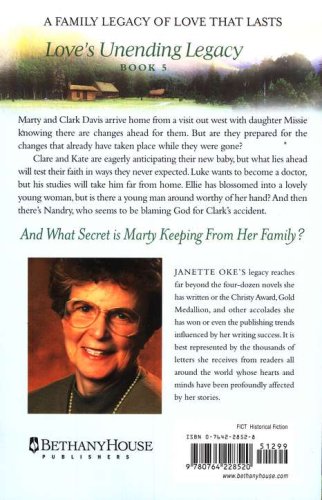 Book 5 of the bestselling Love Comes Softly series. Marty Davis had thoroughly enjoyed her visit with daughter Missie, even though a tragic accident had extended it far longer than originally planned. But now she and Clark are home again, and there are changes to make. The family begins to adjust to Clark's crutch, and Clark and Marty recognize their children's new maturity and independence. But Nandry seems unable to come to terms with Clark's handicap; is she blaming God for the accident? The "baby of the family" is going to be a doctor. Ellie has blossomed into a lovely young woman, but is there any fellow around special enough to ask for her hand? Clare and Kate eagerly anticipate their new baby, but has life prepared them for what lies ahead?