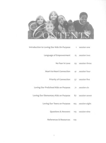 If you are a parent, this series is for you. It has solutions to many of your everyday questions. Although there isn't a formula for raising mistake–free children, there is hope that you can learn to control yourself no matter what choices or lessons your children invite into their lives. The peace and power that comes from making the right adjustments in the presence of your child's mistake is phenomenal. If you complete this material, you are going to see tremendous breakthrough in both your own personal peace and in the loving connections you can form with your child. Loving Our Kids on Purpose will give you tools to: –Protect your connection with your children –Teach your children to manage increasing levels of freedom –Replace the tools of intimidation and control –Create a safe place for children to build confidence and personal responsibility This manual can be used by itself or in conjunction with the Loving Our Kids on Purpose DVD/CD Parenting Series found at www.LovingOnPurpose.com.