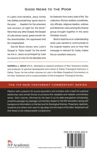 In Luke's vivid narrative, Jesus comes into Galilee proclaiming "good news to the poor . . . freedom for the prisoners and recovery of sight for the blind." More than any other Gospel, the Gospel of Luke shows Jesus' great concern for the downtrodden, the oppressed and the marginalized–including women and children and even those outside the house of Israel. Darrell Bock shows why Luke's Gospel is "tailor-made" for the world we live in–a world often divided along ethnic, religious, economic and political lines. After all, the Jesus portrayed by Luke is a source of unity for his disciples and for believers from every walk of life. Tax collectors, Roman soldiers, prostitutes, city officials, religious leaders, widows and fishermen were among the diverse group brought together in the early Christian church. Bock's dual focus on understanding what Luke wanted to communicate to his original readers and on how that message is relevant for today makes this an excellent resource.