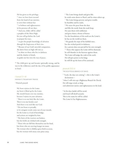 “For the Son of Man has come to seek and to save the lost.” This is the message of the Gospel of Luke, a detailed account of the life and ministry of Jesus, from His birth in Bethlehem to His ascension into heaven. As we read through this five-week plan, pay close attention to Jesus seeking out the marginalized and engaging the religious leaders of the day. Watch Him minister in the power of the Holy Spirit, praying at key points in the narrative. Listen as He teaches parables about the kingdom of God, confounding the conceited and bringing hope to the humble. Experience afresh the wonder and joy of the in-breaking of God’s kingdom through Jesus, friend of sinners and Savior of the world.