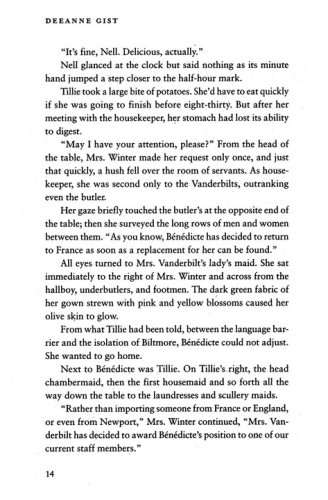 From the day she arrives at the Biltmore, Tillie Reese is dazzled–by the riches of the Vanderbilts and by Mack Danvers, a mountain man turned footman. When Tillie is enlisted to help tame Mack's rugged behavior by tutoring him in the ways of refined society, the resulting sparks threaten Tillie's efforts to be chosen as Edith Vanderbilt's lady's maid. But the stakes rise even higher when Mack and Tillie become entangled in a cover-up at the town orphanage. They could both lose their jobs…and their hearts.
