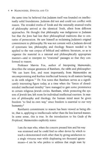 Maimonides, Spinoza, and Us: Toward an Intellectually Vibrant Judaism