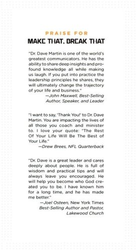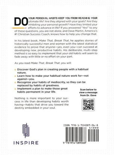 As you read Make That, Break That, you will:Discover God’s plan in creating people with a habitual nature.Learn how to make your habitual nature work for—not against—you.Recognize your habits of mediocrity, so they can be replaced by habits of greatness.Implement a plan to make those great habits permanent in your life.