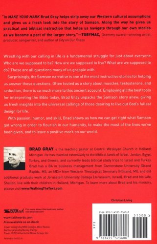 Surprisingly, the Samson narrative is one of the most instructive stories for helping us answer these questions. Often touted as a story about muscles, testosterone, and seduction, there is so much more to this ancient account. Employing all the best tools for interpreting the Bible today, Brad Gray unpacks the Samson story anew, giving us fresh insights into the universal callings of those desiring to live out God's fullest design for life. Perfect for personal and small group study, Make Your Mark will reignite your sense of purpose and stretch your faith so you can find the next step on the journey towards your calling.