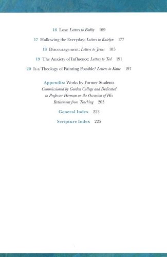In a series of fictional letters, respected artist and educator Bruce Herman passes on wisdom to a younger generation. He explores a wide array of practical, philosophical, and theological issues, such as: