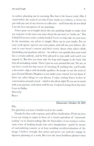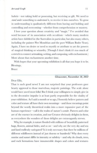Thanks for writing again—and for this unusually philosophical response to my letter! In response: my theology of art is my theology. Period. I think of God as the Artist and all human artists as eternal apprentices. Consequently, all my thinking about God involves the centrality of beauty and the act of making. As I’ve said many times, we were made by a Maker to be makers. . . .