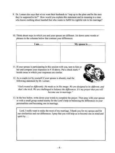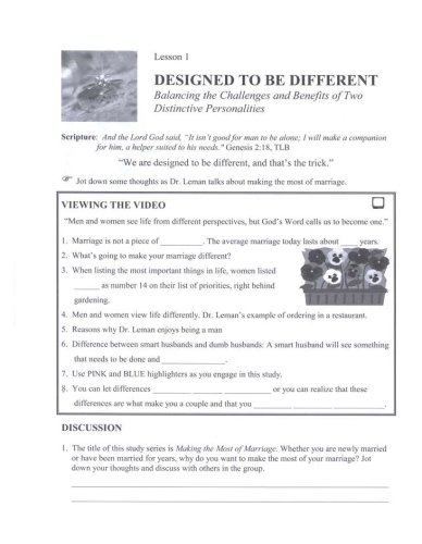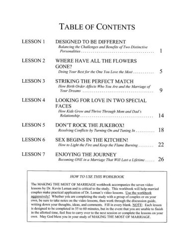 The Making the Most of Marriage workbook is one of the most critical elements of the study. Using the video lesson as a foundation, the workbook has been written specifically to involve participants in healthy discussion and interaction, while emphasizing practical application of marriage principles that work True-to-life case studies add interest and challenge married couples to think and problem-solve together. Every participant should have a workbook.
