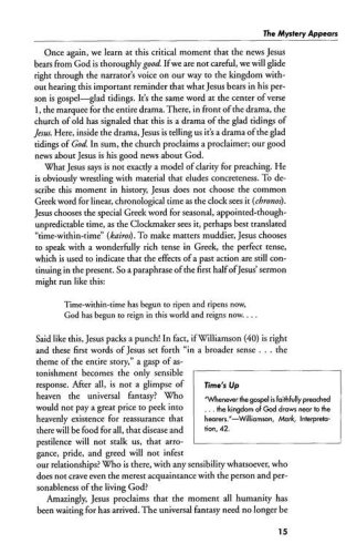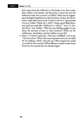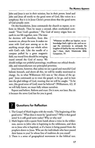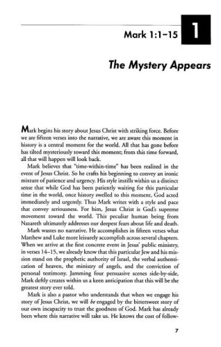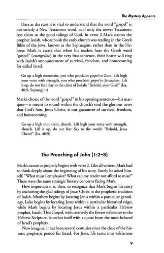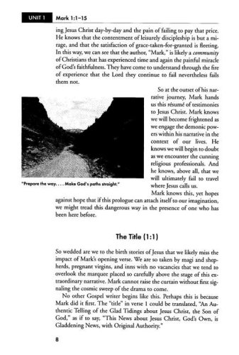 Mark challenges the reader to believe in the mystery of God–that even through difficult times, God reigns. Mark's Gospel carries the reader from the desert wilderness to Jerusalem, and from the crisis of the cross to the victory of the empty tomb.