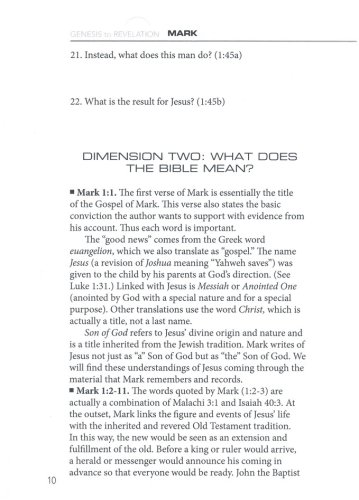 Study the entire book of Mark, starting with the beginning of the Gospel and ending with the movement from darkness to light. Some of the major ideas explored are: the master teacher, the miracle worker, down from the mountain, and the last mile of the way. More than 3.5 million copies of the series have been sold. This revision of the Abingdon classic Genesis to Revelation series is a comprehensive, verse-by-verse, book-by-book study of the Bible based on the NIV. These studies help readers strengthen their understanding and appreciation of the Bible by enabling them to engage the Scripture on three levels: What does the Bible say? Questions to consider while reading the passage for each session. What does the passage mean? Unpacks key verses in the selected passage. How does the Scripture relate to my life? Provides three major ideas that have meaning for our lives today. The meaning of the selected passages is made clear by considering such aspects as ancient customs, locations of places, and the meanings of words. The simple format makes the study easy to use. Updates will include: New cover designs. New interior designs. Leader Guide per matching Participant Book (rather than multiple volumes in one book). Updated to 2011 revision of the New International Version Translation (NIV). Updated references to New Interpreter's Dictionary of the Bible. Biblical chapters on the Table of Contents page beside session titles for at-a-glance overview of biblical structure in most studies. The simple format makes the study easy to use. Each volume is 13 sessions and has a separate leader guide.