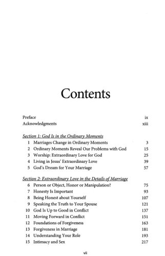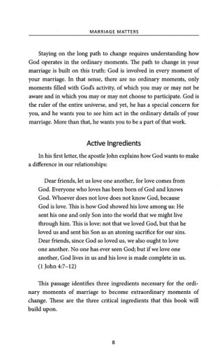 Change begins with seeing day-to-day interactions from a different perspective, taking simple steps to love each other more effectively, and then learning how to take those steps over and over again. Interactions that used to devolve into pointless annoyances and fights can become an opportunity for God's activity and love to become increasingly evident and powerful. The principles in this book will take your marriage to extraordinary places and lead you into a deeper relationship with an extraordinary God.