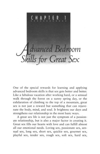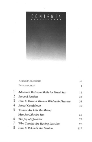 Advanced bedroom skills for great sexThe joys of quickiesWhy couples are having less sexPassionate monogamySexual anatomy and oral sexHow to keep the magic of romance aliveAnd much more