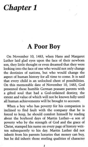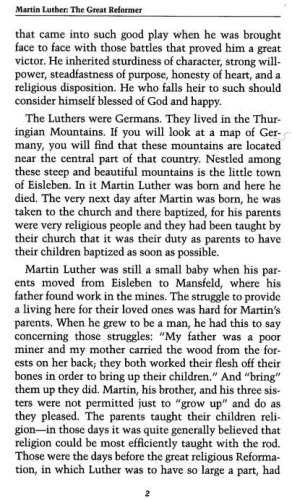 The life of Martin Luther is a stirring tale of God's grace. Few men have influenced the Christian church more than Luther. This 122-page biography by J. A. Morrison provides an account of the accomplishments of this remarkable man of God. It contains maps and several illustrations. Recommended for ages 12 and up. Grades 7-12.