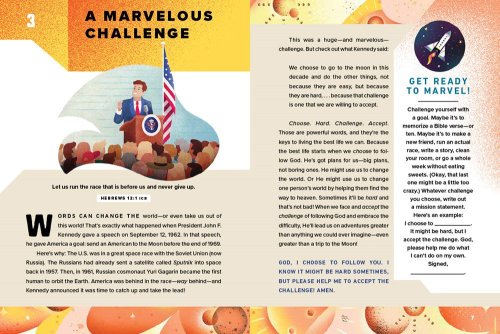handle real-life issues such as loneliness, peer pressure, negative emotions, and more;tackle truths about God's creation, learn how our universe fits together in perfect harmony, and discover God's love for His children;learn from courageous people, including Father Abraham, Buzz Aldrin, Neil Armstrong, Katherine Johnson, and many others;dig into interesting space and astronomy facts, plus scientific findings reinforced by the Bible; andfoster a new sense of wonder at God's magnificent creation as they engage with His promises.