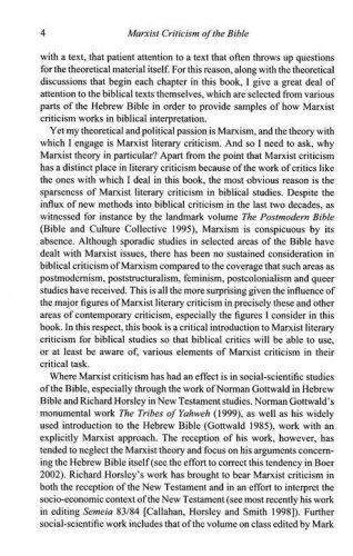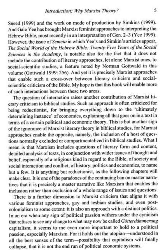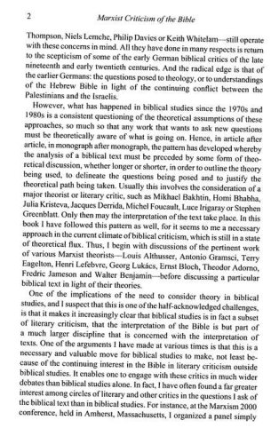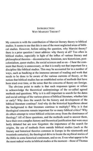 This is the first large-scale critical introduction for biblical criticism of a significant area of contemporary cultural and literary theory, namely Marxist literary criticism. The book comprises studies of major figures in the tradition, specifically Althusser, Gramsci, Eagleton, Adorno, Benjamin, Bloch, Lefebvre, Lukács and Jameson. At the same time, through careful choice of critics, the book will function as a general introduction to Marxist literary theory as a whole in relation to biblical studies. Throughout the aim is to show how this material is relevant to biblical criticism, in terms of both particular approaches to the Bible and the use of those approaches for interpreting selected texts from Genesis, Exodus, Ruth, 1 Samuel, 1-2 Kings, Jeremiah, Ezekiel, Psalms and Daniel. Biblical Seminar Series, Volume 87