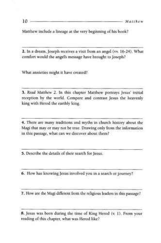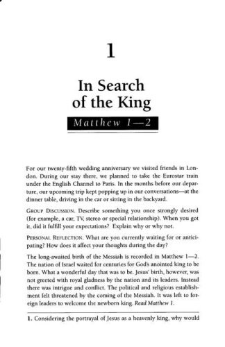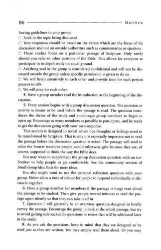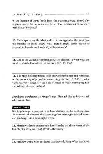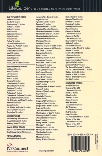 What would it be like to be discipled by Jesus himself? What would he teach you about relationships, priorities, wealth and his coming kingdom? What would you learn from his actions? Matthew's Gospel brings you face to face with Jesus as he calls, teaches and prepares his disciples. As you work through these twenty-two session LifeGuide ® Bible Study on Matthew, you can become one of those chosen followers. This LifeGuide Bible Study features questions for starting group discussions and for meeting God in personal reflection. Leader's notes are included with information on study preparation, leading the study and small group components as well as helps for specific Bible passages covered in the study. Presented in a convenient workbook format and featuring the inductive Bible study approach, LifeGuides are thoroughly field-tested prior to publication; they're proven and popular guides for digging into Scripture on your own or with a small group. For over three decades LifeGuide Bible Studies have provided solid biblical content and raised thought-provoking questions—making for a one-of-a-kind Bible study experience for individuals and groups. This series has more than 130 titles on Old and New Testament books, character studies, and topical studies.