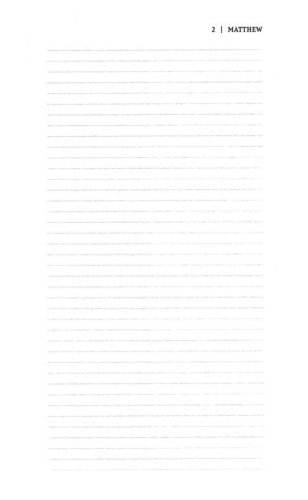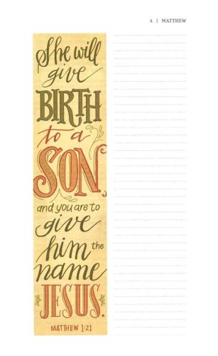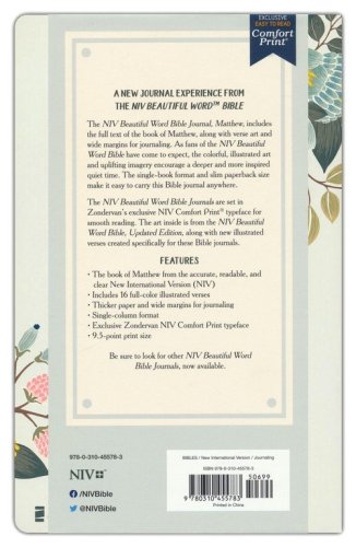 The book of Matthew from the accurate, readable, and clear New International Version (NIV)Includes 16 full-color illustrated versesThicker cream-colored paper and wide margins for journalingSingle-column formatExclusive Zondervan NIV Comfort Print typeface9.5-point print size