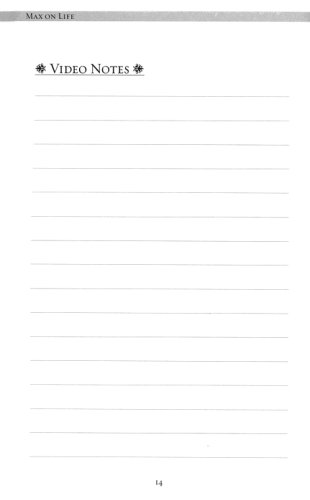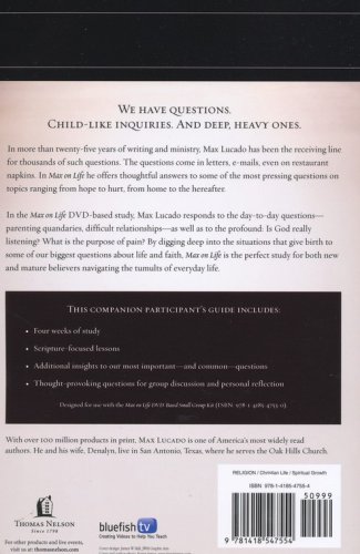 In the Max on Life DVD-based study, Max addresses questions about the role of prayer, the purpose of pain, and the reason for our ultimate hope. He responds to the day-to-day questions—parenting quandaries, difficult relationships—as well as to the profound: Is God really listening?