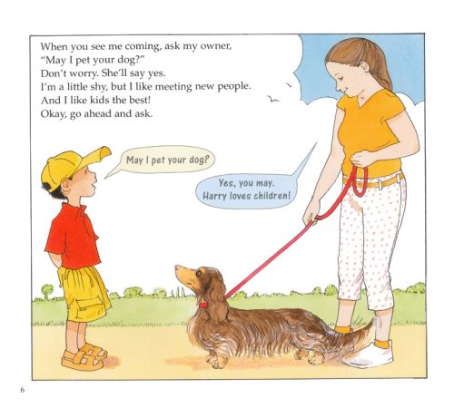 Children encounter dogs wherever they go: in the park, on the sidewalk, at their friends’ homes. Sometimes it’s love at first sight, on both sides—but not always. The right way for a child to approach a dog to ensure that the first connection is a complete success begins with this question to the owner: “May I pet your dog?” Using Harry the dachshund as a gentle guide, Stephanie Calmenson addresses this valuable yet overlooked topic with care and precision, and Jan Ormerod’s warm illustrations portray a wide variety of breeds and personalities and depict situations that are realistic but never scary. Unique and straightforward, this is the essential guide to bringing children and dogs together—for kids and parents alike.
