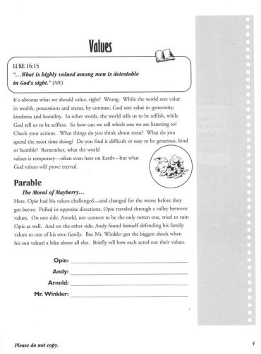 The Mayberry Bible Study has been used to reach adults, young people, and even non-church members. Long-tim e believers will also enjoy these classic episodes, relevant Scriptures, and practical applications. This Volume 4 study guide contains a parable, reflection, and action sections.