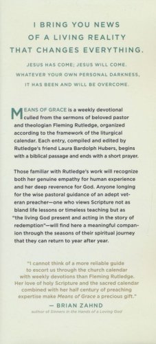 Means of Grace is a weekly devotional culled from the sermons of beloved pastor and theologian Fleming Rutledge, organized according to the framework of the liturgical calendar. Each entry, compiled and edited by Rutledge’s friend Laura Bardolph Hubers, begins with a biblical passage and ends with a short prayer.