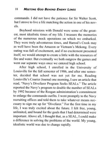 Since childhood Steve Watkins dreamed of becoming one of America's elite Naval Commandos. Watkins acheived that dream and served as a Navy SEAL working behind enemy lines in the Gulf War. During his time of service he found Christ and now serves as Senior Pastor at Kenton Baptist Church in Kenton, Kentucky.