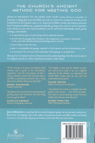 Jesus is speaking to us here and now. Lectio divina is a practice of Scripture reading that treats the Bible not only as a text to be examined, but also as the living Word of God spoken anew to us. Experienced Bible teacher Jan Johnson gives us forty Scripture meditations, organized topically, giving us the tools we need to practice lectio divina on our own. Each meditation can be used both individually and in group settings, and includes