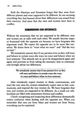Once upon a time Martians and Venusians met, fell in love, and had happy relationships together because they respected and accepted their differences. Then they came to Earth and amnesia set in: they forgot they were from different planets.