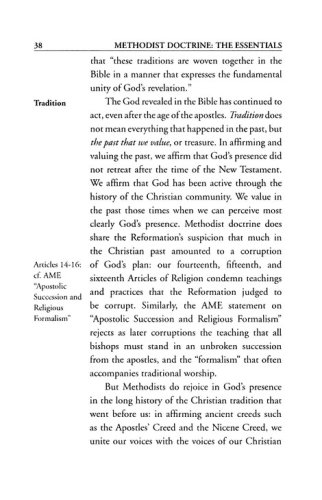 In this concise, accessible book, Dr. Ted Campbell provides a brief summary of the major doctrines shared in the Wesley family of denominations. Writing in concise and straightforward language, Campbell organizes the material into systematic categories: doctrine of revelation, doctrine of God, doctrine of Christ, doctrine of the Spirit, doctrine of humanity, doctrine of "the way of salvation" (conversion/justification/sanctification), doctrine of the church and means of grace, and doctrine of thing to come. He also supplies substantial but simplified updated references in the margins of the book that allow for easy identification of his sources. John Wesley distinguished between essential doctrines on which agreement or consensus is critical and opinions about theology or church practices on which disagreement must be allowed. Though today few people join churches based on doctrinal commitments, once a person has joined a church it becomes important to know the teachings of that church's tradition. In Methodist Doctrine: The Essentials, Ted Campbell outlines historical doctrinal consensus in American Episcopal Methodist Churches in a comparative and ecumenical dialogue with the doctrinal inheritance of other major families of Christian tradition. In this way, the book shows both what Methodist churches historically teach in common with ecumenical Christianity and what is distinctive about the Methodist tradition in its various contemporary forms. For more information, please see the author's website: http://tedcampbell.com/methodist-doctrine/