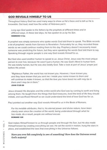 In Volume 1 of Milestones, we explore questions like these surrounding the person, character, and mission of God as reveled in Scripture. Over the course of eight sessions, students will: