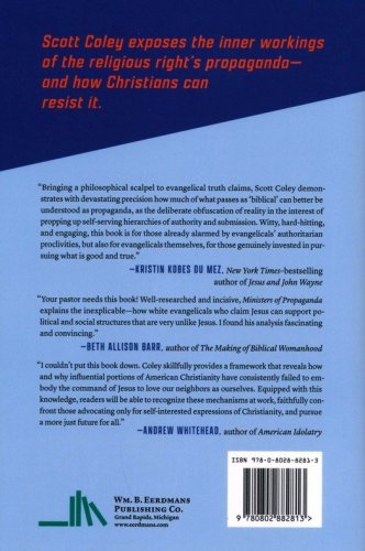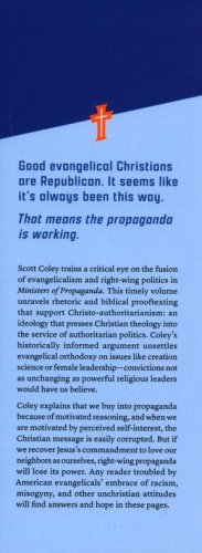 Scott Coley trains a critical eye on the fusion of evangelicalism and right-wing politics in Ministers of Propaganda. This timely volume unravels rhetoric and biblical prooftexting that support Christo-authoritarianism: an ideology that presses Christian theology into the service of authoritarian politics. Coley’s historically informed argument unsettles evangelical orthodoxy on issues like creation science or female leadership—convictions not as unchanging as powerful religious leaders would have us believe.