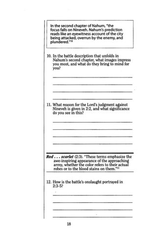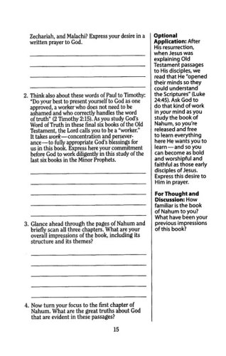 FeaturesCover the books of Nahum, Habakkuk, Zephaniah, Haggai, Zechariah, and Malachi in 12 lessonsEquip yourself to lead a Bible studyImagine the Bible’s historical worldStudy word origins and definitionsExplore thoughtful questions on key themesGo deeper with optional projectsAdd your notes with extra space and wide marginsFind the flexibility to fit the time you have