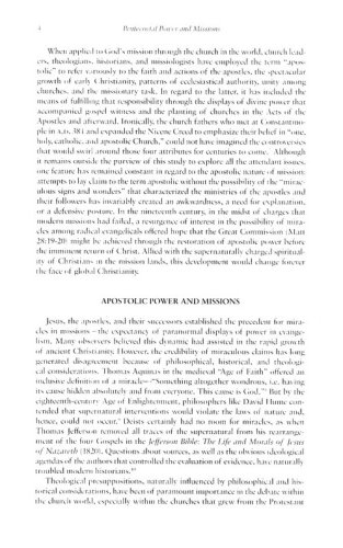 "Miracles, Missions and American Pentecostalism examines the historical, theological, and missiological context and development of American Pentecostal missions, including the expectation of miracles and how this fit into them ission scene of the twentieth century.McGee shows that htis charismatically-inclined spirituality predominates today among Majority World Christianity, at least because of the contributions of Pentecostal missionaries.