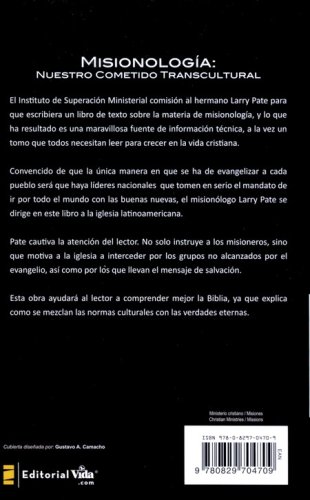 El Instituto de Superación Ministerial comisionó al hermano Larry Pate para que escribiera un libro de texto para la materia de misionología, y lo que ha resultado es una maravillosa fuente de información técnica, a la vez que un tomo que todos necesitan leer para crecer en la vida cristiana. El autor está convencido de que la única manera en que se ha de evangelizar a cada pueblo será que haya líderes nacionales que tomen en serio el mandato de ir por todo el mundo con las buenas nuevas.