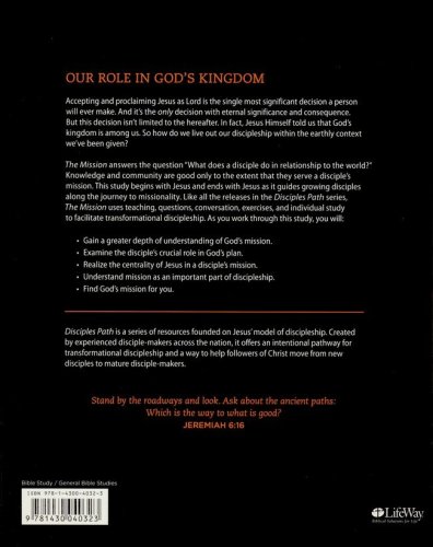 The Mission Bible Study Book asks disciples to explore the question "What does a disciple do in relationship with the world?" Knowledge and community are only good as much as they serve a disciple on his or her mission. This study begins and ends with Jesus as it guides growing disciples along the journey to missionality together with Him. Like all the releases in the Disciples Path series, The Mission uses teaching, questions, conversation, exercises, and individual study to facilitate transformational discipleship through this dynamic yet personal Bible study experience.