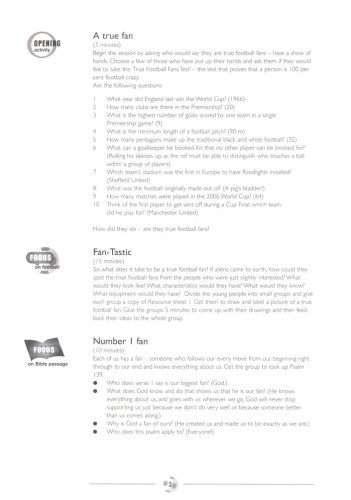 Football Focus (exploring the theme for the session, discussion and feedback)
