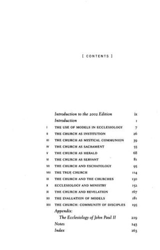 There is today a dramatic reexamination of structure, authority, dogma — indeed, every aspect of the life of the Church is held up to scrutiny. Welcoming this as a sign of vitality, Avery Dulles has carefully studied the writings of contemporary Protestant and Catholic ecclesiologists and sifted out six major approaches, or "models," through which the Church's character can be understood: as Institution, Mystical Communion, Sacrament, Herald, Servant, and, in a recent addition to the book, as Community of Disciples. A balanced theology, he concludes, must incorporate the major affirmations of each. "The method of models or types," observes Cardinal Dulles, "can have great value in helping people to get beyond the limitations of their own particular outlook and to enter into fruitful conversation with others… Such conversation is obviously essential if ecumenism is to get beyond its present impasses."