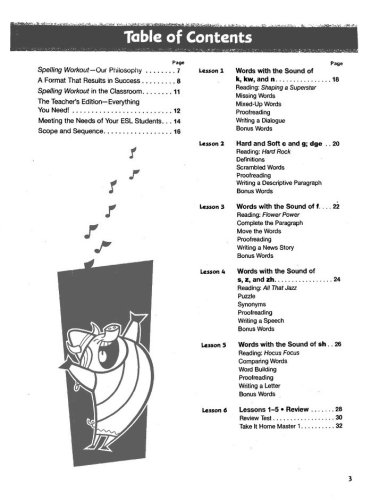 Interesting and varied exercises provide a fun path to successful spelling! Based on a phonetic model, cross-curricular reading passages, high-interest writing activities, flexible lessons, and motivating activities, help Spelling Workout students move from simple sound-letter relationships to more complex spelling patterns.
