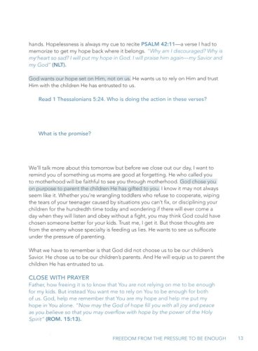 As moms, we’re under constant pressure. We have to get it right in all areas of life—work, home, family, and faith—because our children’s futures hinge on our ability to perfectly orchestrate the present.