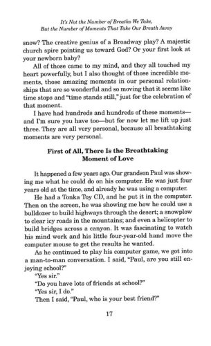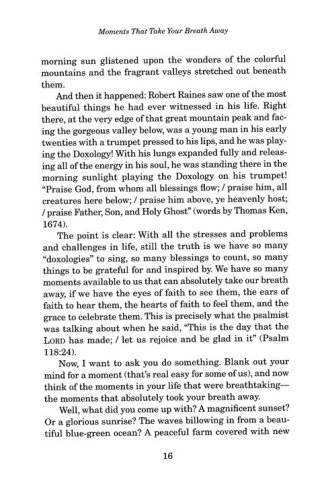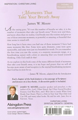 As the saying goes, "It’s not the number of breaths we take, it is the number of moments that take our breath away." Every now and then, and more often than we realize, God breaks into the routine and gives us one of those awesome moments, so powerful, so amazing, so beautiful that time seems to stand still. How long has it been since you had one of those moments? I have had many moments like that. Some were quite dramatic, some were quite memorable, and some were just too beautiful for words. Do you remember the first time you saw the ocean, or a majestic mountain range, or a breathtaking sunset with colors so amazing that you find yourself thinking, Only God could do that! As we explore in this book some of the many different kinds of moments that take your breath away, it is my hope and prayer that we will all become more aware of and receptive to the myriad breathtaking moments that God has in store for us. —James W. Moore, adapted from the introduction Contains twelve chapters plus an introduction. Each chapter of the book features a key passage of Scripture and focuses on a key theme. A study guide is included.