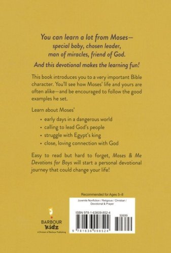 Learn about Moses’early days in a dangerous worldcalling to lead God’s peoplestruggle with Egypt’s kingclose, loving connection with God Easy to read but hard to forget, Moses & Me Devotions for Kids will start a personal devotional journey that could change your life!