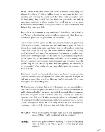 Stories of God at work in the midst of postpartumMeaningful reflection questions designed to help you processClean and simple layoutDaily questions to encourage you towards praiseModern and colorful artworkWeekly reflection writings for each sectionDevotions specifically geared toward postpartum mothers