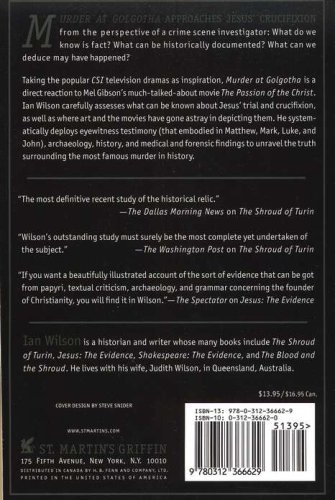 Taking the popular CSI television dramas as inspiration, Murder at Golgotha is a direct reaction to Mel Gibson's much talked about movie The Passion of the Christ. Ian Wilson carefully assesses what can be known about Jesus' trial and crucifixion, as well as where art and the movies have gone astray in depicting them. He systemically deploys eyewitness testimony (that embodied in Matthew, Mark, Luke, and John), archaeology, history, and medical and forensic findings to unravel the truth surrounding the most famous murder in history.