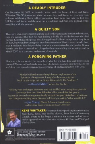 In the weeks following the murder, the police learned that the attack had been orchestrated by the son who survived—Mr. Whitaker had unknowingly forgiven his own son for destroying their family. That son was eventually arrested and convicted of the crime, and now he sits on death row. Murder by Family is the story of Kent Whitaker’s forgiveness in the face of the ultimate betrayal. .