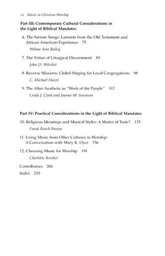In addition to addressing the overarching issues in sacred music and the church, Music in Christian Worshipdemonstrates that music as sung prayer requires much more than music alone and approaches church music from a unique perspective, stressing the theological, musical, and pastoral aspects of sacred music. Kroeker's work contains essays by various philosophers, theologians, musicians, and historians who have contributed much to the creation of dynamic music for worship. The result is a work that truly demonstrates how music can effectively serve the liturgy.