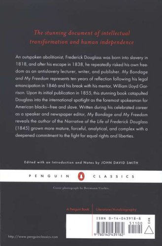 Ex-slave Frederick Douglass's second autobiography-written after ten years of reflection following his legal emancipation in 1846 and his break with his mentor William Lloyd Garrison-catapulted Douglass into the international spotlight as the foremost spokesman for American blacks, both freed and slave. Written during his celebrated career as a speaker and newspaper editor, My Bondage and My Freedom reveals the author of the Narrative of the Life of Frederick Douglass (1845) grown more mature, forceful, analytical, and complex with a deepened commitment to the fight for equal rights and liberties.